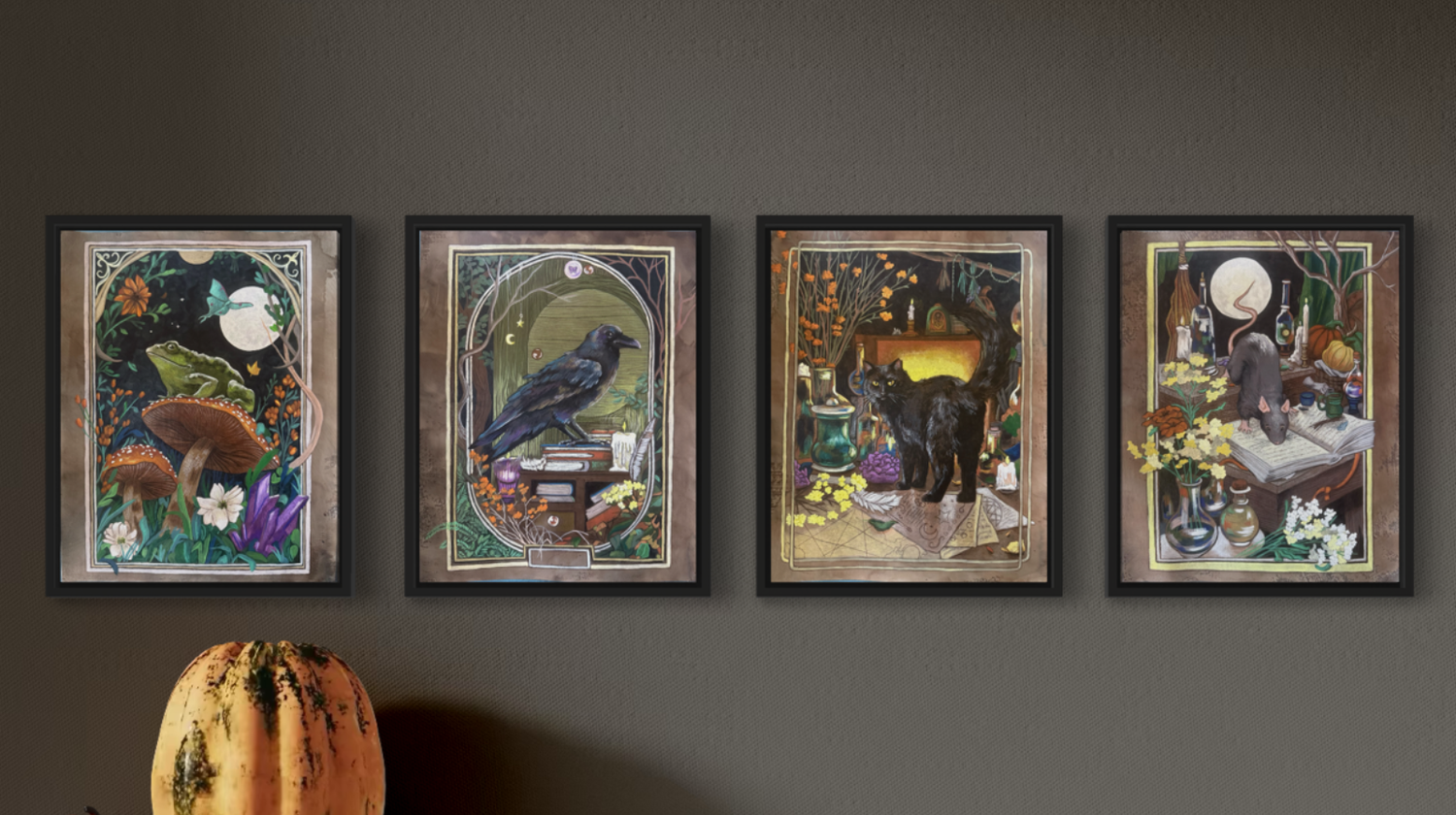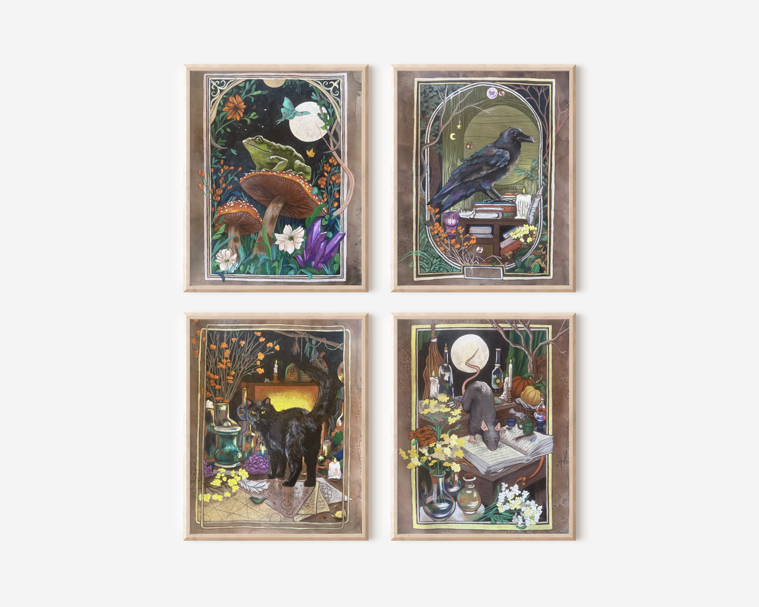 There are 4 designs in the collection - Toad, Raven, Black Cat, and Mouse